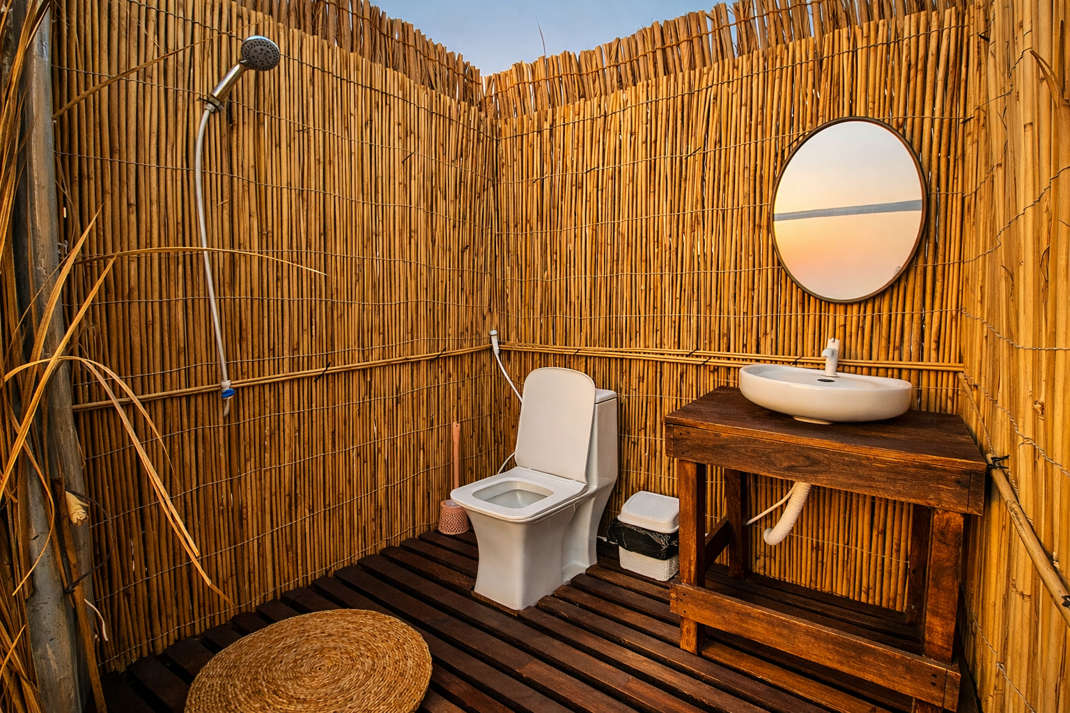 Experience comfortable eco-glamping in Oman with everything you need for a relaxed stay—shaded terraces, soft bedding, solar-powered lighting, and fresh, clean water. Our camp combines natural simplicity with thoughtful comfort, creating a unique off-grid beach experience close to nature.
