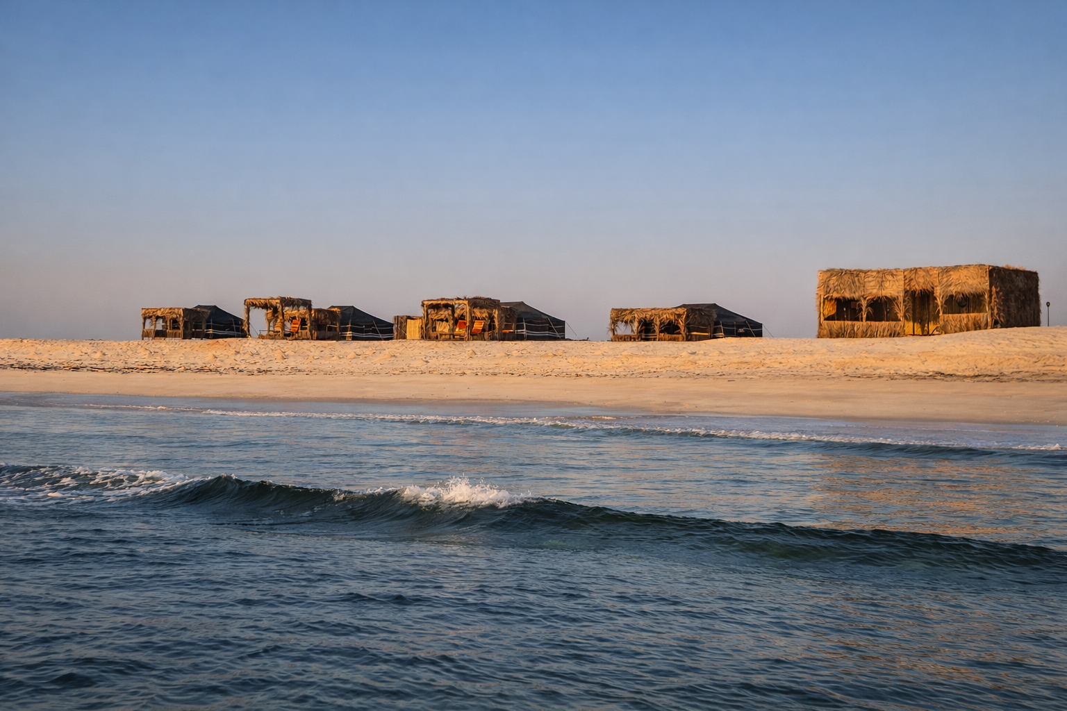 Ocean Camp is located in Bar Al Hikman, Oman, a truly remote and peaceful coastal area known for its turquoise waters and pristine beaches. Away from crowds and tour groups, our seaside glamping tents offer uninterrupted ocean views, gentle sea breeze, and the chance to spot dolphin fins and turtle heads right from your tent.